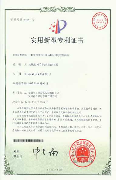 近日,從國家知識產(chǎn)權局傳來(lái)喜訊,公司申報的“一種便攜式施工現場(chǎng)臨時(shí)用電聯(lián)排插座”實(shí)用新型專(zhuān)利獲批,并頒發(fā)了國家實(shí)用新型專(zhuān)利證書(shū)。