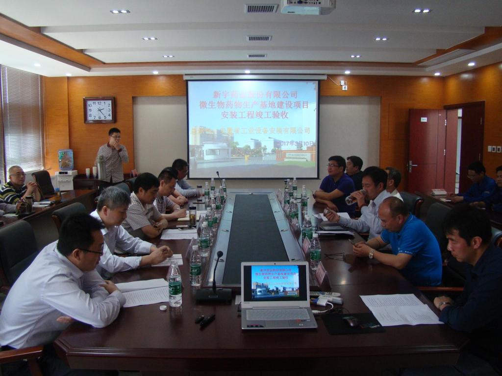 2017年5月10日下午,新宇藥業(yè)微生物藥物生產(chǎn)基地項目安裝工程竣工驗收會(huì )議在新宇藥業(yè)股份有限公司召開(kāi),新宇藥業(yè)股份有限公司總經(jīng)理萬(wàn)曉飛、總工程師朱立元、總會(huì )計師蔣峰、項目總指揮李利、副總指揮李民、陳海軍以及相關(guān)部門(mén)同志參加會(huì )議,安徽安裝公司黨委書(shū)記胡六中、副總經(jīng)理劉安俊、紀委書(shū)記李寬旭、總會(huì )計師張元斌、總工程師吳繼成等應邀出席。