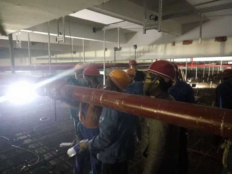 11月28日下午,公司副總經(jīng)理劉安俊一行蒞臨安徽中煙工業(yè)蚌埠卷煙廠(chǎng)易地搬遷項目部檢查指導工作。他首先檢查了項目部管理人員在崗情況,隨后不辭辛苦深入施工現場(chǎng),來(lái)到每一個(gè)施工班組,每一個(gè)施工點(diǎn)檢查指導。特別是在高架庫屋面板消防噴淋施工點(diǎn),滿(mǎn)堂腳手架,空間施工高度21米,劉安俊親自登上最高處施工平臺進(jìn)行指導。項目執行經(jīng)理郭洋等陪同檢查并就現場(chǎng)項目的管理工作及存在的困難做了匯報。