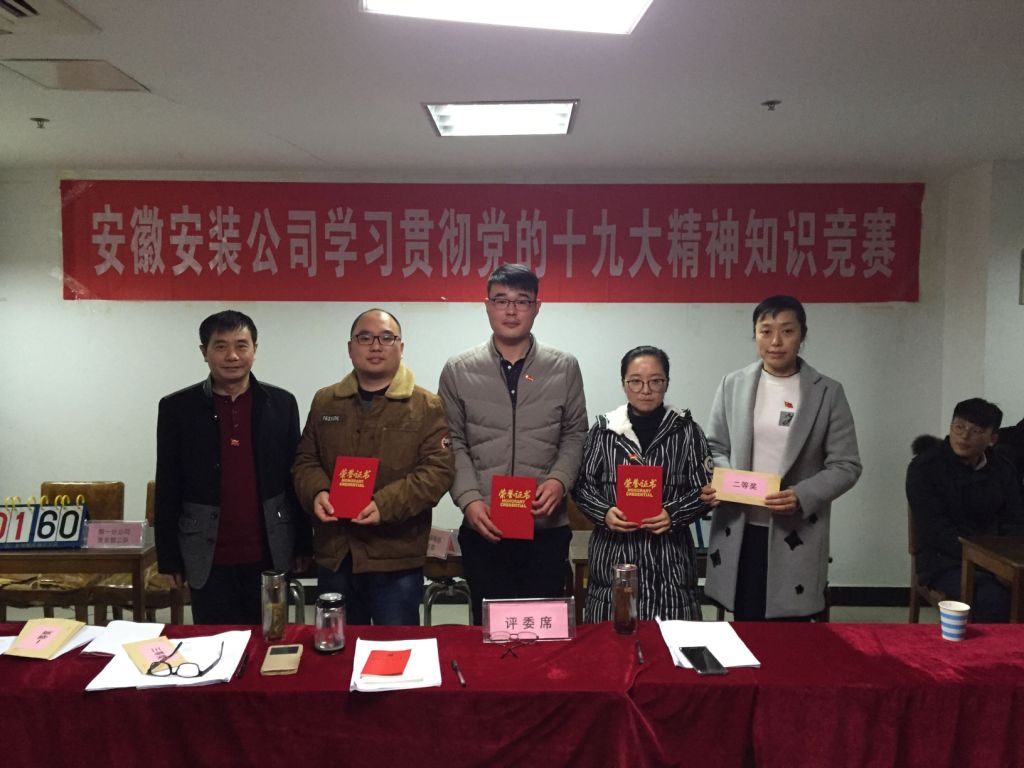 12月6日下午,安徽安裝公司學(xué)習貫徹黨的十九大精神知識競賽成功舉辦。來(lái)自公司機關(guān)及所屬各分公司黨支部8支代表隊24名選手參加比賽。
