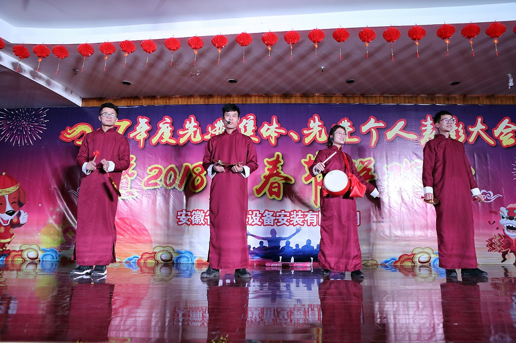 彩鳳辭舊歲,金犬迎新春。2月8日下午,安徽安裝公司2018年迎新春聯(lián)歡會(huì )如期舉行。公司領(lǐng)導及全體員工200余人歡聚一堂,共迎新春佳節,共享節日喜悅!
