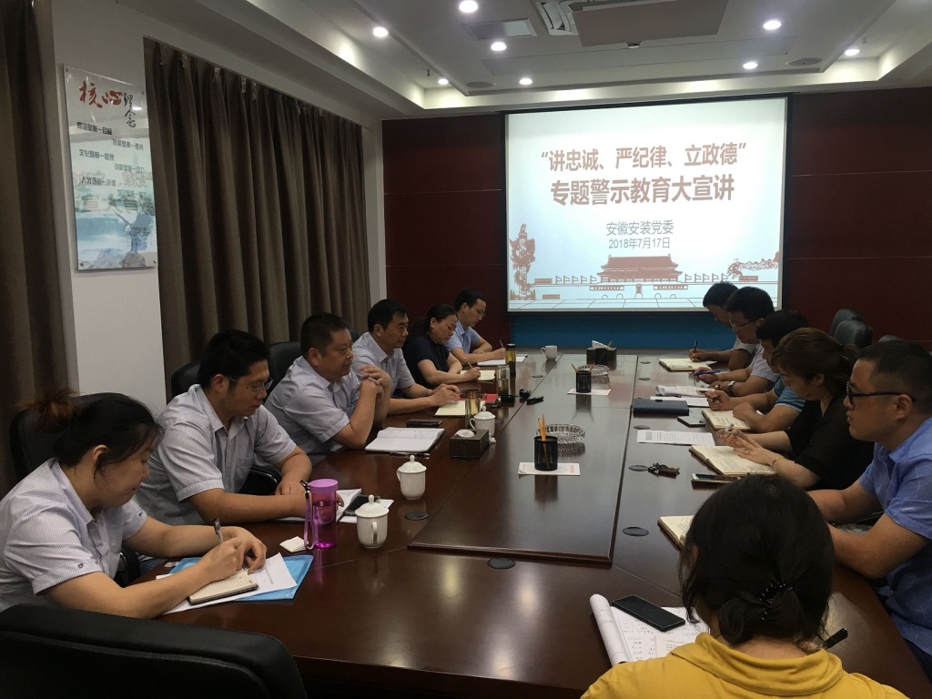 李寬旭結合安徽省委、省國資委和集團公司黨委,關(guān)于以魯煒案、徽商集團窩案為反面教材在全體黨員干部中開(kāi)展“講忠誠、嚴紀律、立政德”專(zhuān)題警示教育的安排意見(jiàn),作了題為《講忠誠、嚴紀律、立政德 樹(shù)履職盡責的標桿,做敢于擔當的表率》的專(zhuān)題黨課報告。
