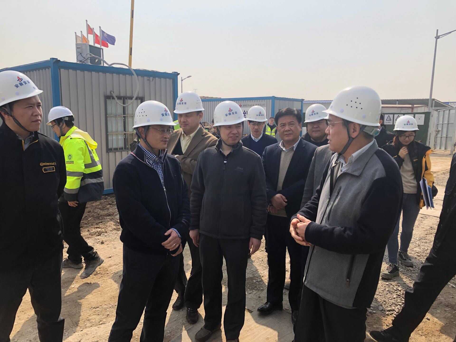 3月13日上午,合肥市副市長(cháng)王民生蒞臨安徽安裝大陸馬牌三期擴建項目部調研指導工作,大陸馬牌輪胎合肥工廠(chǎng)總經(jīng)理王小驥,安裝公司黨委書(shū)記、董事長(cháng)胡六中陪同調研。