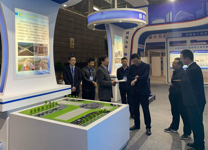 公司與安徽路橋、安徽三建、安徽交航代表集團參加展出,主題為“創(chuàng )新高效,綠色建造”,展示了集團在合肥軌道建設方面取得的成果。公司展示了在建軌道項目3號線(xiàn)TJ20標段現場(chǎng)部分施工工藝,如“共板法蘭風(fēng)管連接技術(shù)”,其優(yōu)點(diǎn)是節約原材料,提高工效,節約人工,縮短工期,減少機械臺班的使用,節約成本,密封性能較角鋼法蘭連接密封性能強,減輕了風(fēng)管的重量。同時(shí)還展示了項目施工圖片、地面站航拍視頻及效果圖。合肥市城市軌道交通協(xié)會(huì )常務(wù)副會(huì )長(cháng)羅偉民以及股份公司董事長(cháng)王厚良、股份公司副總經(jīng)理孫學(xué)軍到場(chǎng)觀(guān)展指導,并給予高度評價(jià),公司總工程師吳繼成也到場(chǎng)布展指導。