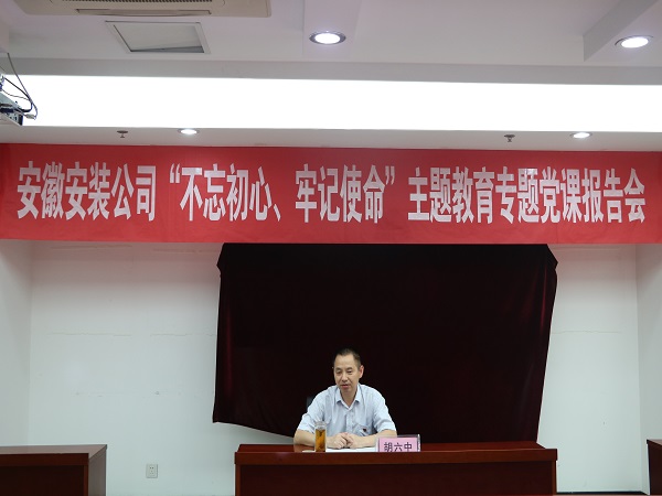根據安徽安裝公司黨委“不忘初心、牢記使命”主題教育工作部署安排,8月8日下午,安徽安裝公司召開(kāi)“不忘初心、牢記使命”主題教育專(zhuān)題黨課報告會(huì ),集團主題教育第一指導組應邀出席報告會(huì )。