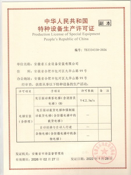 特種設備安裝改造修理許可證(電梯)