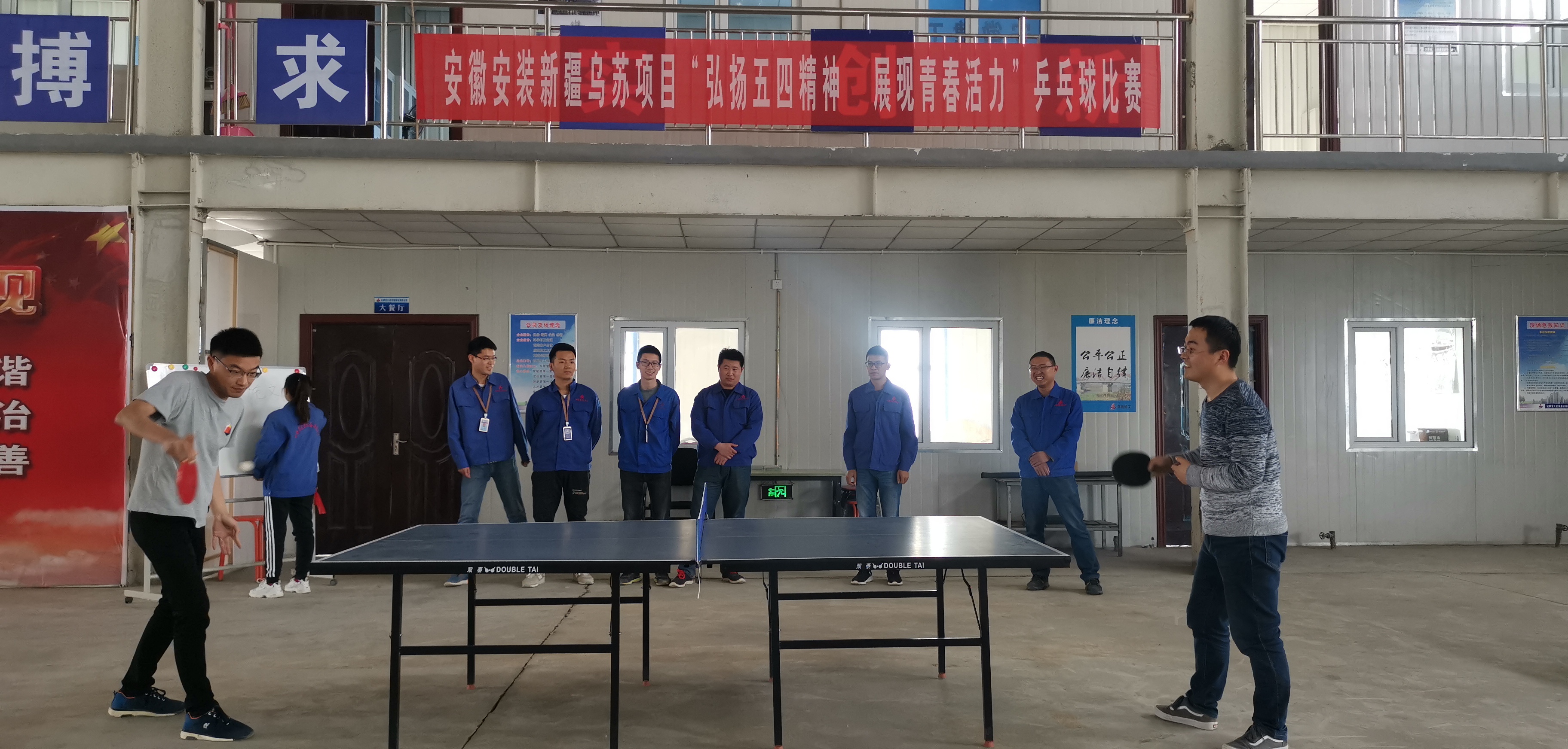 為紀念五四愛(ài)國主義青年運動(dòng)100周年,展現團隊青年朝氣蓬勃、健康向上的精神風(fēng)貌,2019年5月4日,新疆烏蘇項目部組織開(kāi)展了“弘揚五四精神 展現青春活力”乒乓球比賽。