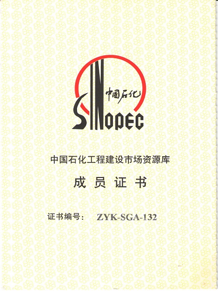中國石化工程建設市場(chǎng)資源庫成員證書(shū)