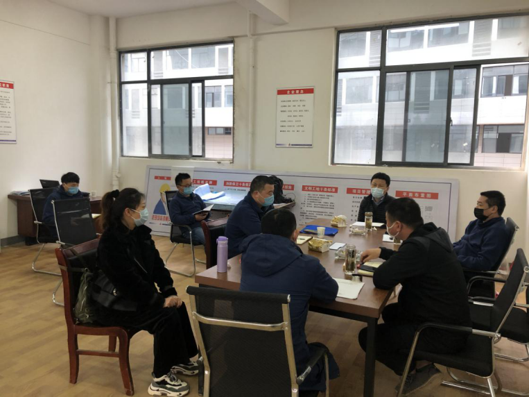 趙永峰強調,復工就是搶工,工期就是效益。針對項目工期緊、任務(wù)重,項目部要重點(diǎn)做好以下工作:一要持續抓好疫情防控各項舉措落地落實(shí),確保疫情防控萬(wàn)無(wú)一失;二要嚴格按照“一責兩案”要求,壓緊壓實(shí)責任,結合實(shí)際精心制定復工復產(chǎn)方案預案;三要加強項目管控力度,聚焦工期材料、質(zhì)量全等關(guān)鍵因素,搶抓工期進(jìn)度,樹(shù)立品牌形象,創(chuàng )造經(jīng)濟效益;四要加強團隊建設,項目部必須凝心聚力、發(fā)揮優(yōu)勢,立足企業(yè)積極向好的發(fā)展前景、方向與定位,積極打造一支“拿得出、打得贏(yíng)”的項目團隊。
