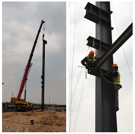 伴隨著(zhù)隆隆的吊車(chē)轟鳴聲,閃爍的電焊火花,縱橫交錯的鋼構架拼裝,一道道工序正在有條不紊的進(jìn)行著(zhù)……這是走進(jìn)蕪湖宇培年產(chǎn)50萬(wàn)方建筑工業(yè)化構件生產(chǎn)基地項目鋼結構工程,看到的一片繁忙施工景象。因受疫情的影響,項目部2020年3月5日接到總包的復工復產(chǎn)通知,3月6日立即組織召開(kāi)復工會(huì )議,全面部署“防疫”舉措和生產(chǎn)任務(wù)。在做好施工必備的人、材、機進(jìn)場(chǎng)和安全教育及技術(shù)交底后,3月11日,當第一根27米高的廠(chǎng)房跨立柱穩穩地吊裝成功后,項目部全面啟動(dòng),按下?lián)尮ぁ翱爝M(jìn)鍵”。
