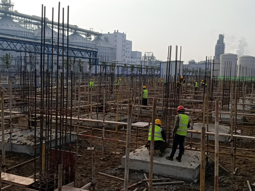在安徽中糧30萬(wàn)噸/ 年燃料乙醇搬遷改造項目施工現場(chǎng),清晨雖然寒風(fēng)瑟瑟,但施工現場(chǎng)卻是一片火熱,施工人員正在忙而不亂地加緊進(jìn)行鋼結構安裝、墻體砌筑、基礎梁架體搭設等。熱火朝天的現場(chǎng)讓人們忽略了冬日的寒冷,項目執行經(jīng)理徐德良說(shuō):“項目施工有著(zhù)嚴謹的進(jìn)度安排,一環(huán)扣一環(huán),容不得半點(diǎn)懈怠,我們以元旦不休息的方式喜迎新年,目的就是要確保如期完成施工任務(wù),交出一份滿(mǎn)意的答卷”。