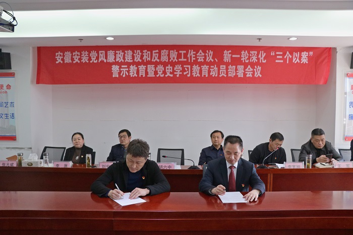 期間,公司黨委與所屬各黨支部簽訂了《黨風(fēng)廉政建設責任書(shū)》,公司中層管理人員簽訂了《廉潔自律承諾書(shū)》。會(huì )議以現場(chǎng)加視頻形式召開(kāi)。公司領(lǐng)導班子成員、機關(guān)中層管理人員、在肥地區分公司領(lǐng)導班子成員及機關(guān)全體黨員在主會(huì )場(chǎng)參會(huì );所屬分公司領(lǐng)導班子成員在視頻分會(huì )場(chǎng)參會(huì )。