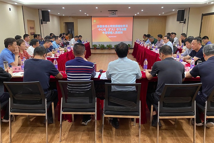 5月8日,安徽安裝公司在阜陽(yáng)潁東中醫院建設PPP項目舉辦安徽安裝公司黨委理論學(xué)習中心組(擴大)學(xué)習會(huì )暨中層管理人員培訓黨史學(xué)習教育專(zhuān)題黨課報告會(huì )。公司黨委書(shū)記、董事長(cháng)胡六中作了題為《學(xué)黨史牢記初心 辦實(shí)事踐行使命》的黨課報告。公司中層管理人員及項目一線(xiàn)有關(guān)同志等共計40余人參加會(huì )議。