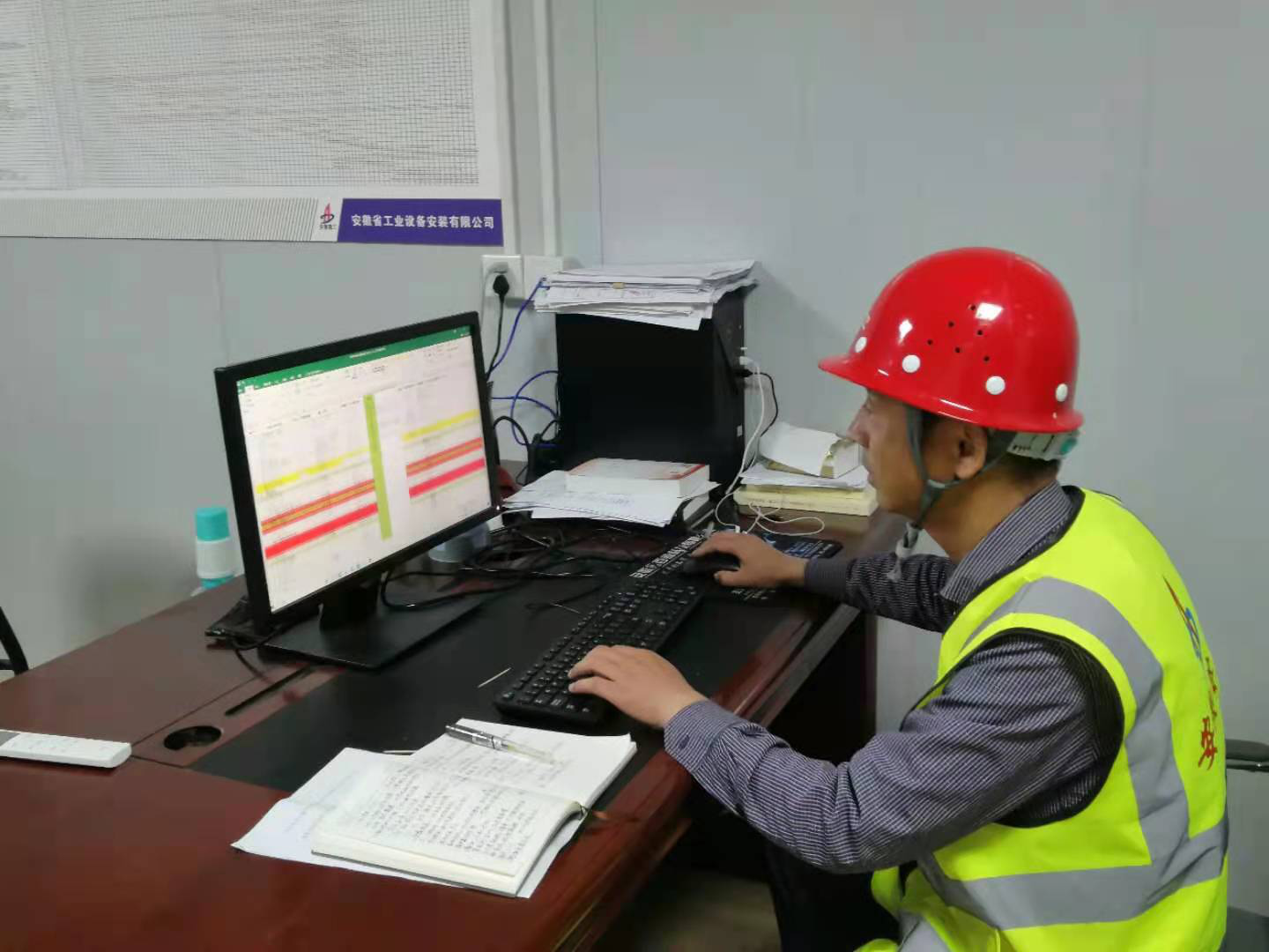 圖為項目副經(jīng)理共產(chǎn)黨員孫浩挑燈夜戰專(zhuān)心致志排查剩余工作量,記錄當天工作日記