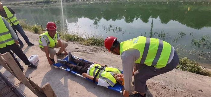 固鎮三八河景觀(guān)工程項目部根據本項目臨近水邊的作業(yè)特點(diǎn)開(kāi)展了防溺水應急救援演練,模擬現場(chǎng)人員發(fā)生溺水,項目部立即組織人力搶救上岸。立即清除口、鼻中的污泥、雜草,保持呼吸道通暢。并進(jìn)行胸外按壓及人工呼吸,120救護車(chē)及時(shí)到場(chǎng)后送往醫院搶救,通過(guò)防溺水演練增強了項目部全體員工遇到緊急情況時(shí)的應變能力和實(shí)際操作救援處置能力。