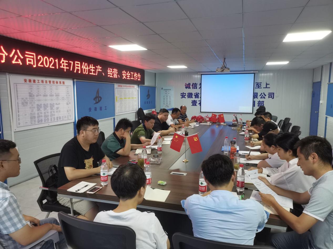 7月31日,房建(裝飾)分公司在定遠壹石通化學(xué)科技廠(chǎng)房項目部召開(kāi)7月生產(chǎn)、安全、經(jīng)營(yíng)工作會(huì )議,分公司領(lǐng)導班子成員、所屬各項目班子成員、分公司機關(guān)各部門(mén)負責人以及工程部全體成員參加會(huì )議,會(huì )議由分公司副經(jīng)理徐明東主持。