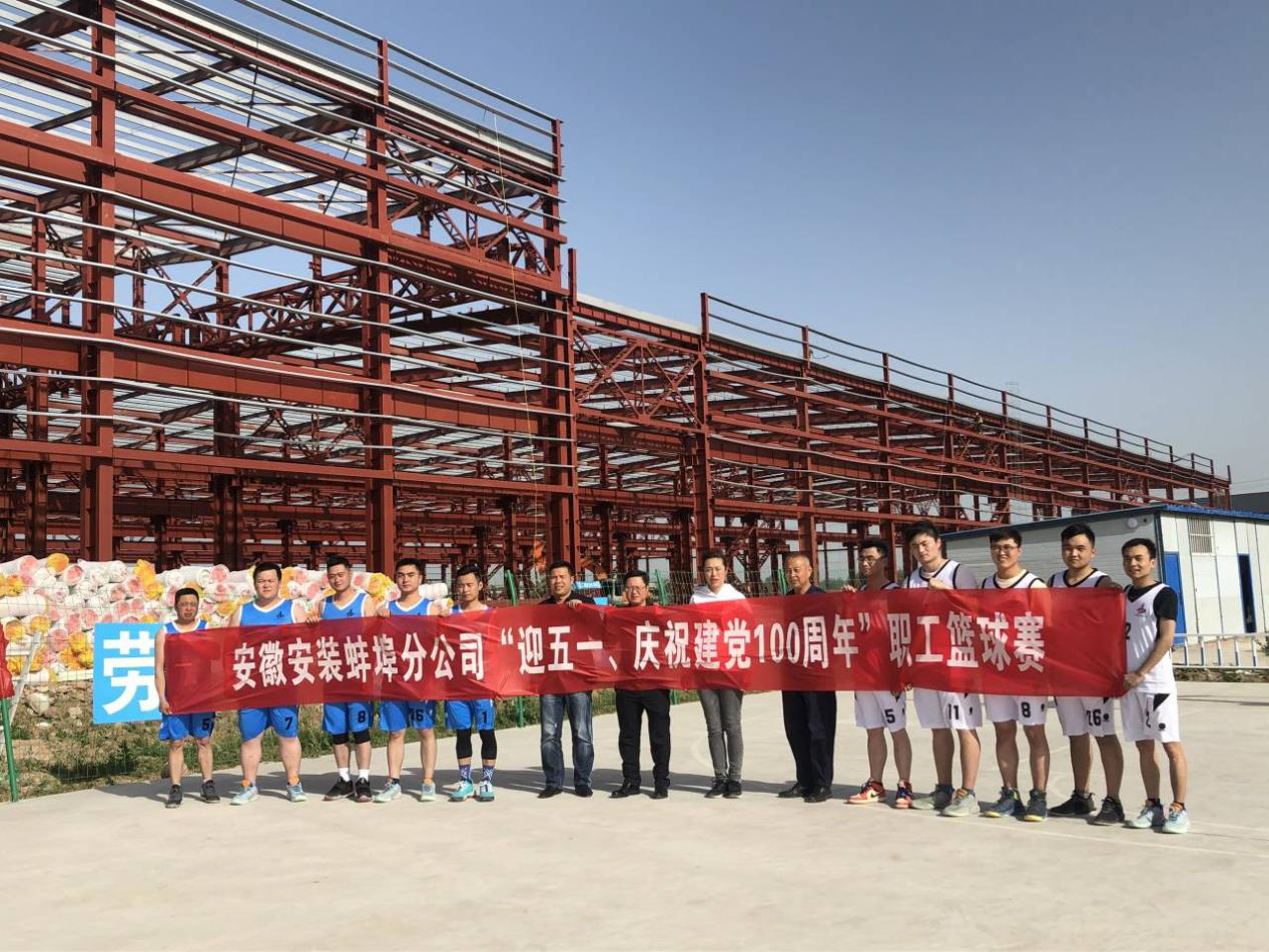 為喜迎五一,慶祝中國共產(chǎn)黨成立100周年,唱響“勞動(dòng)最光榮”的主旋律,豐富職工業(yè)余文化生活,營(yíng)造和諧向上、團結奮進(jìn)的企業(yè)文化氛圍,4月29日下午由蚌埠分公司黨支部舉辦的“迎五一 慶祝建黨100周年”職工籃球友誼賽在蚌埠臨港產(chǎn)業(yè)園項目部室外籃球場(chǎng)火熱舉行。本次籃球賽兩支球隊的隊員全部為分公司各在建項目員工,分公司班子成員和部分員工觀(guān)看現場(chǎng)比賽。