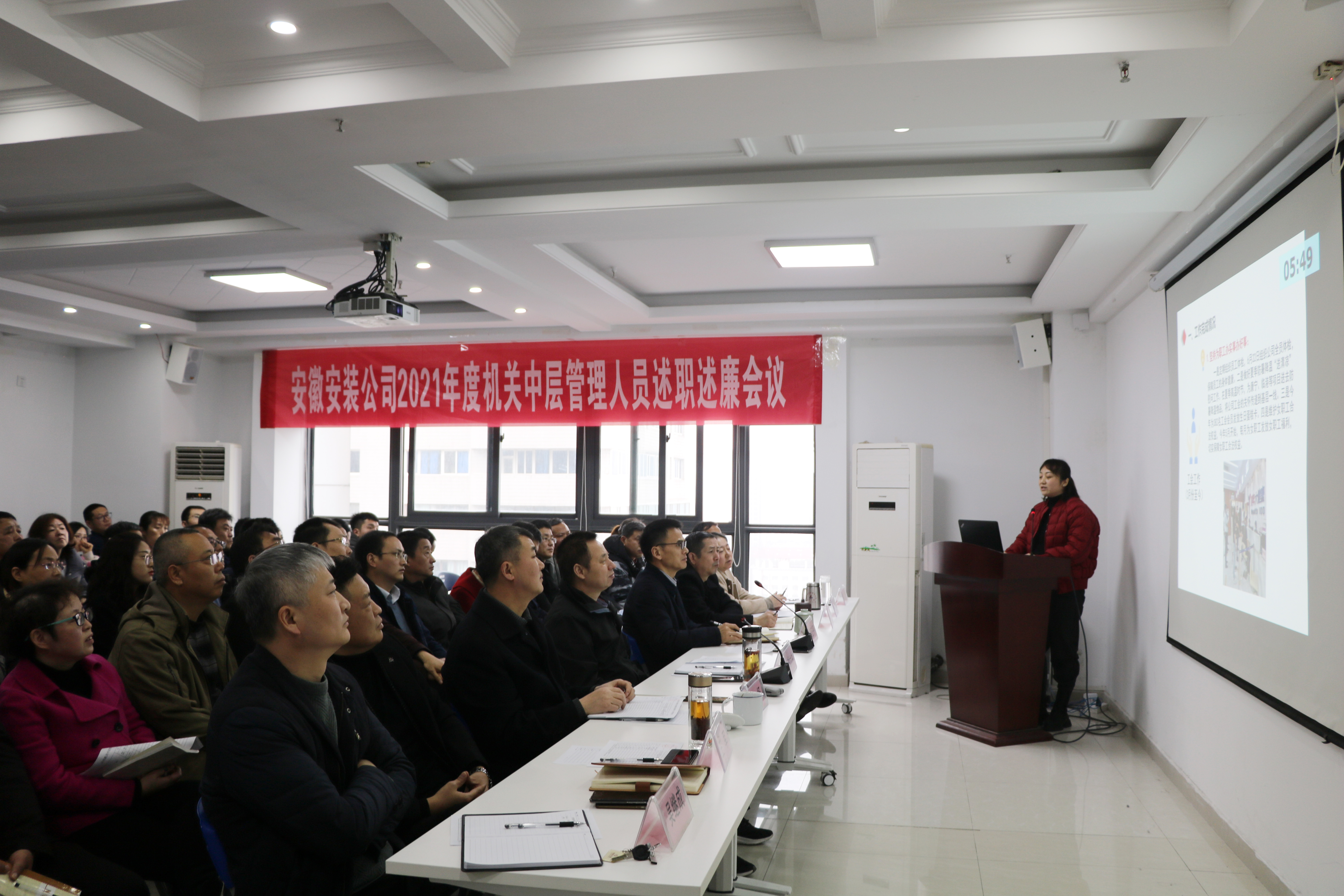會(huì )上,公司機關(guān)共28名中層管理人員以PPT匯報的形式,從德、能、勤、績(jì)、廉五個(gè)方面逐一作了述職述廉報告,客觀(guān)總結了2021年度工作完成情況,重點(diǎn)分析了工作中存在的問(wèn)題和不足,并就2022年度的工作提出了思路和規劃。