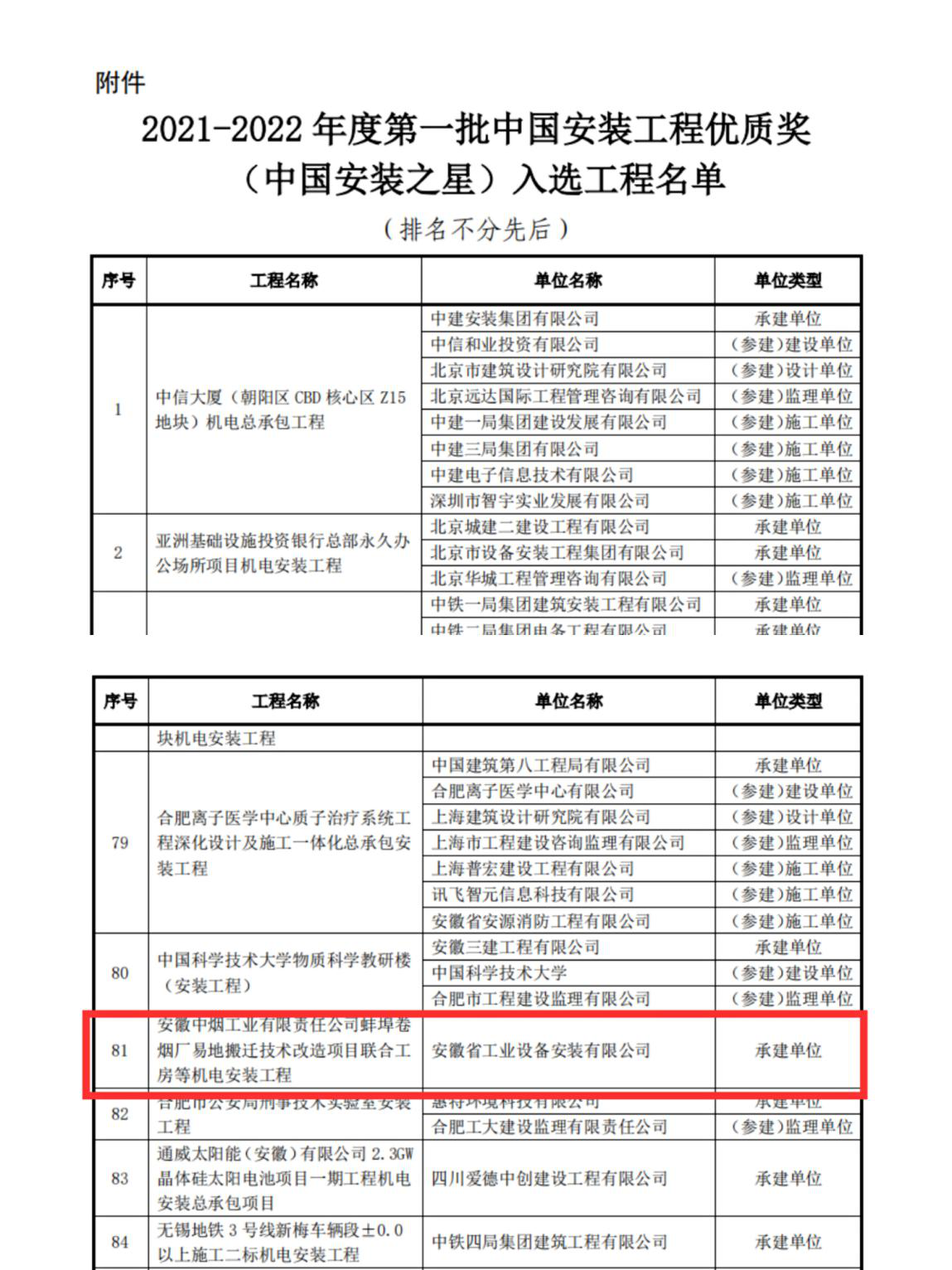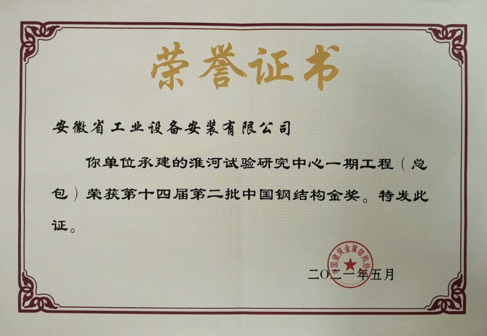 2021年公司首次一年內獲得兩項國家級優(yōu)質(zhì)工程獎,即中國鋼結構金獎、中國安裝工程優(yōu)質(zhì)獎(安裝之星)。