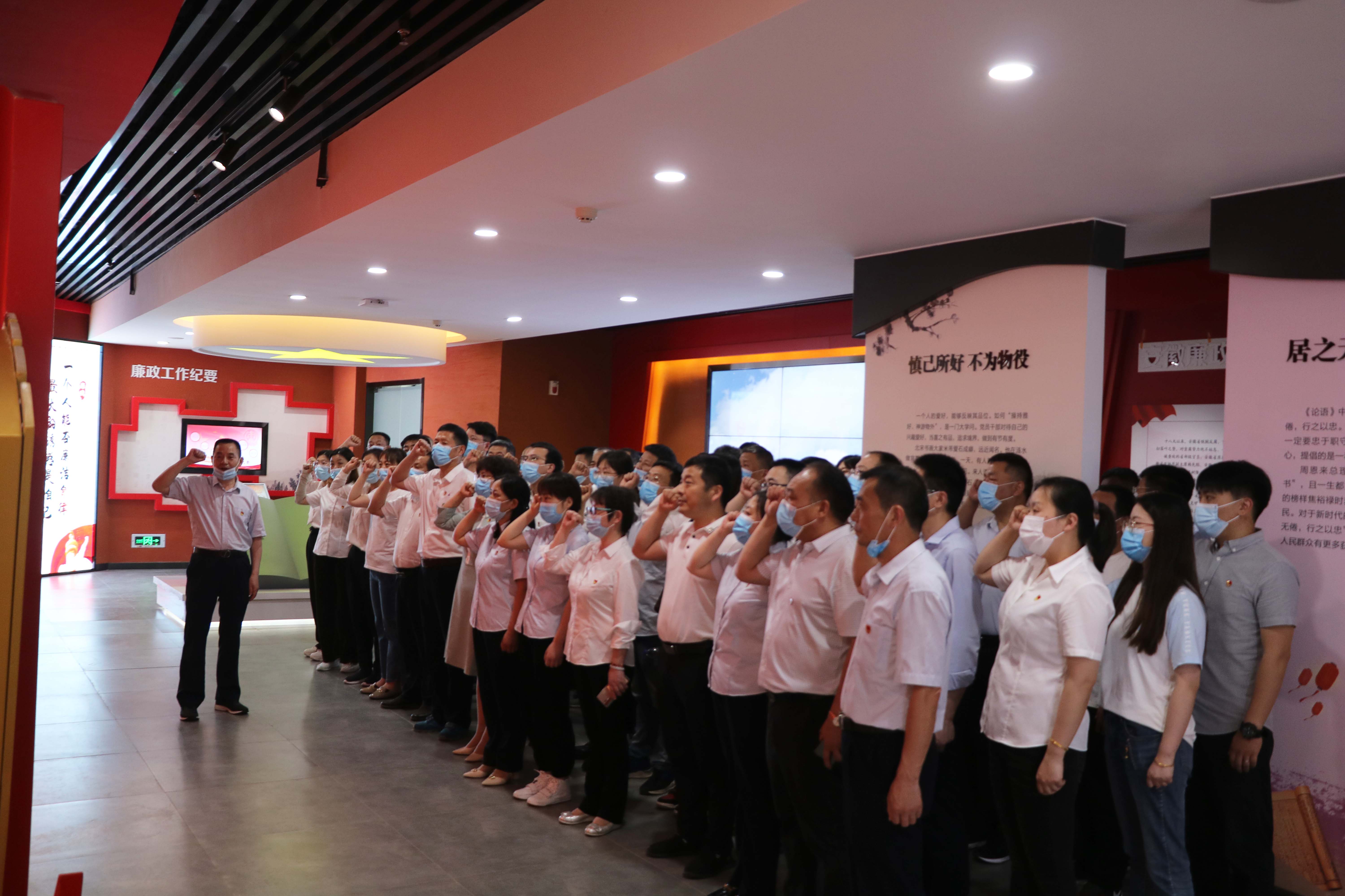 瑤海區人民法院廉政文化館共兩層,內容分為“廉政文化館”“法治文化教育館”和“院史陳列館”三個(gè)篇章,綜合運用展板、實(shí)物、雕塑、場(chǎng)景、聲光電等多種形式,將歷史與現實(shí)緊密結合,多角度、大縱深地闡釋廉潔文化這一主題。在一樓警示教育報告廳里,在講解員的解說(shuō)下,大家依次參觀(guān)了鑒史問(wèn)廉、廉政故事、貪腐之害、時(shí)光隧道、廉潔豐碑、廉政成果、廉政文章、廉政寄語(yǔ)八大板塊,參觀(guān)過(guò)程中大家仔細聆聽(tīng),細細研讀,通過(guò)展廳內文字、實(shí)物、整合的典型圖文資料、影音影像等,深入學(xué)習了廉政文化、中國共產(chǎn)黨反腐倡廉歷史、安徽省反腐倡廉實(shí)踐等內容,大家在視覺(jué)、聽(tīng)覺(jué)上接受了一堂全面生動(dòng)的反腐倡廉警示教育課?;顒?dòng)期間,公司黨委書(shū)記、董事長(cháng)胡六中帶領(lǐng)在場(chǎng)全體黨員集體重溫入黨誓詞。