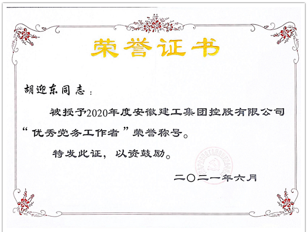 “榜樣的力量——安徽安裝公司先進(jìn)人物先進(jìn)事跡展播”(五)“建工集團優(yōu)秀黨務(wù)工作者”胡迎東