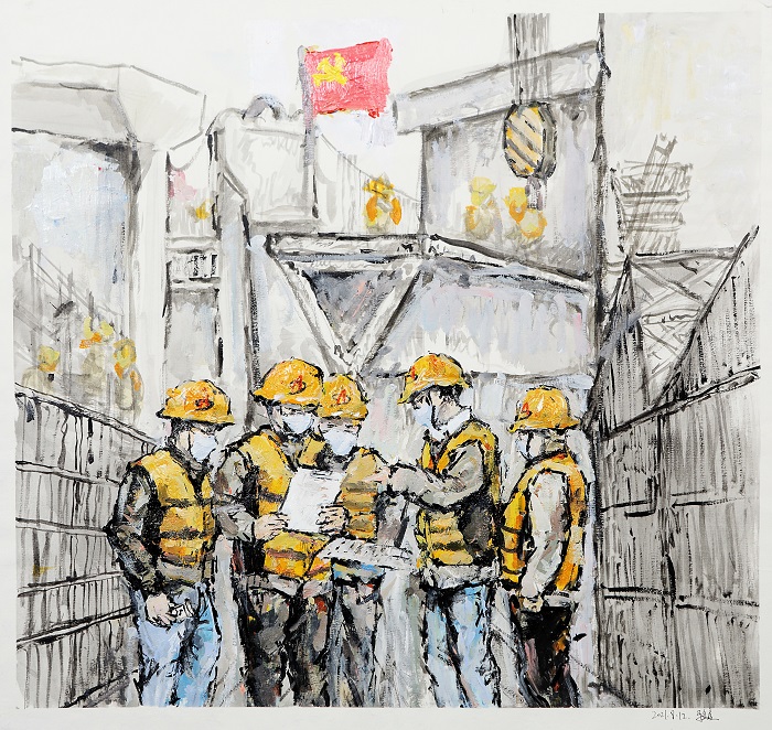 繪畫(huà)類(lèi):馬金鑫——油畫(huà)《支部建在項目上》