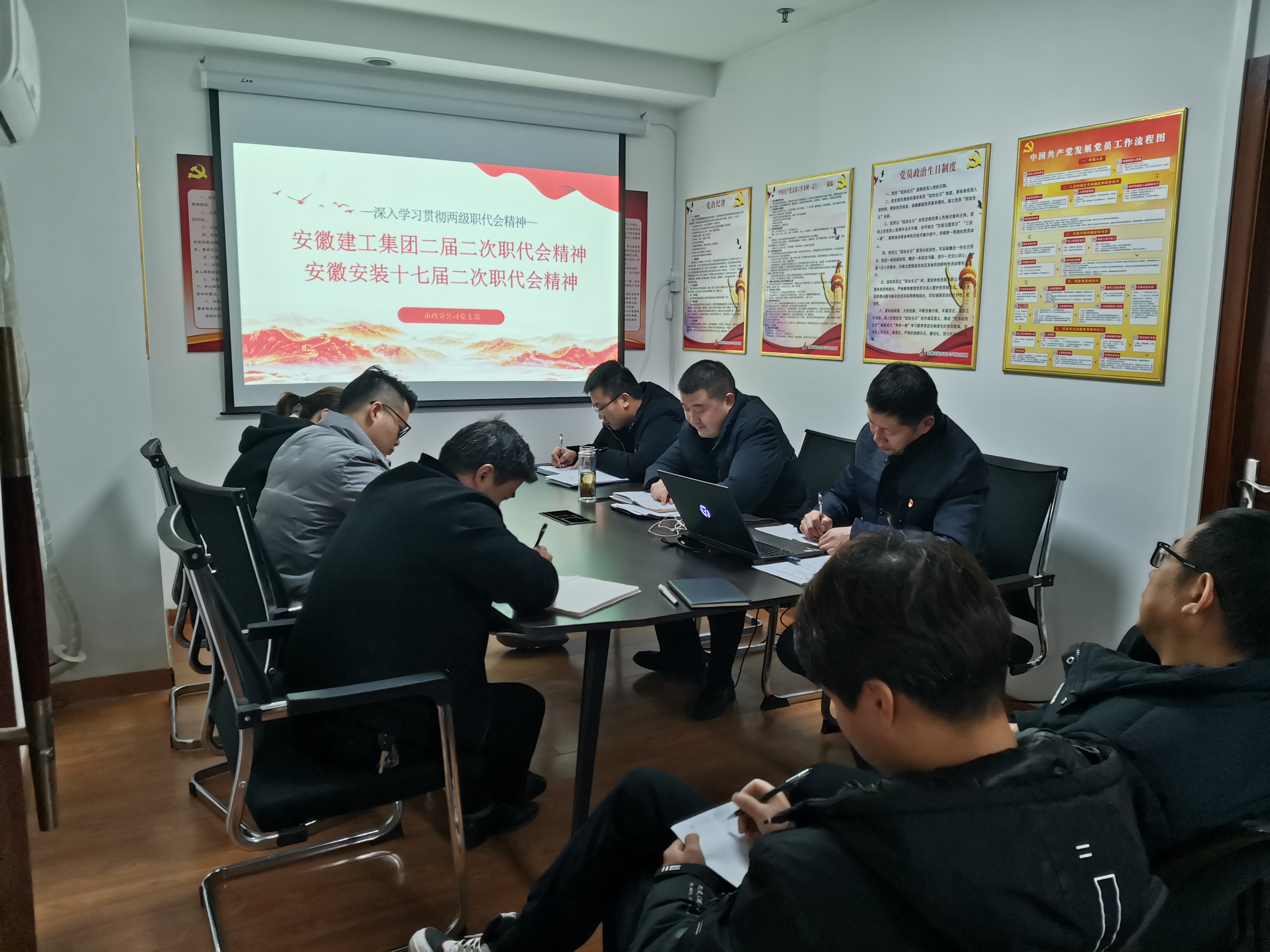會(huì )上,分公司副經(jīng)理黃彥濤首先傳達學(xué)習了建工控股黨委書(shū)記、董事長(cháng)趙時(shí)運作的題為《奮力譜寫(xiě)安徽建工高質(zhì)量發(fā)展新篇章,以?xún)?yōu)異成績(jì)迎接黨的二十大勝利召開(kāi)》的講話(huà)精神,黨委副書(shū)記、總經(jīng)理、董事劉家靜作的題為《拉高標桿、爭創(chuàng )一流,不斷實(shí)現安徽建工更高質(zhì)量更可持續發(fā)展》的工作報告;隨后,胡迎東傳達學(xué)習了公司黨委書(shū)記、董事長(cháng)胡六中作的題為《守正創(chuàng )新實(shí)干篤行強基固本競進(jìn)提質(zhì)以趕考姿態(tài)答好安徽安裝高質(zhì)量發(fā)展新答卷》工作報告和題為《黨建領(lǐng)航聚合力深度融合強保障以高質(zhì)量黨建領(lǐng)航安徽安裝高質(zhì)量發(fā)展》的講話(huà)精神,讓大家對集團和公司2021年取得的成績(jì)和2022年的形勢與任務(wù)都有了深刻的理解和認識。