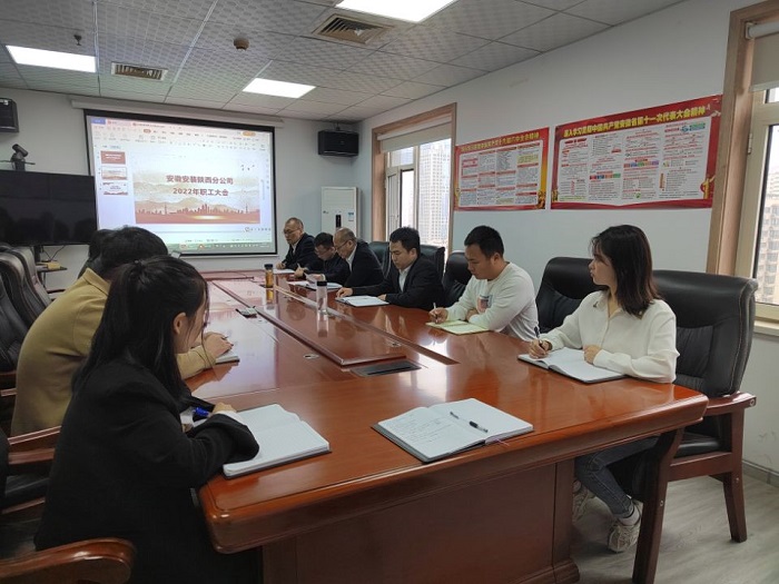 3月18日上午,陜西分公司組織召開(kāi)2022年度職工大會(huì ),分公司領(lǐng)導班子成員、機關(guān)全體人員共同參會(huì ),會(huì )議由分公司黨支部書(shū)記江輝主持。