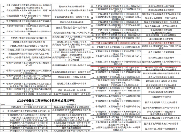 近日,從安徽省建設行業(yè)質(zhì)量與安全協(xié)會(huì )傳來(lái)喜訊,協(xié)會(huì )發(fā)布的《關(guān)于2022年安徽省工程質(zhì)量管理小組及質(zhì)量信得過(guò)班組建設活動(dòng)成果的通知》文件中,安徽安裝公司共獲得11項安徽省工程建設QC小組活動(dòng)成果獎項。