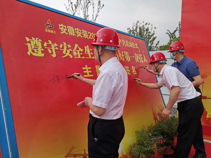 在全國第21個(gè)“安全生產(chǎn)月”活動(dòng)到來(lái)之際,5月30日上午,安徽安裝公司2022年“安全生產(chǎn)月”啟動(dòng)儀式在年配套1000萬(wàn)臺新能源汽車(chē)及年產(chǎn)2億臺制冷空調壓縮機關(guān)鍵性能件制造基地項目舉行。公司黨委書(shū)記、董事長(cháng)胡六中,紀委書(shū)記、工會(huì )主席李楊,副總經(jīng)理趙伯平,總工程師吳繼成及機關(guān)各部門(mén)、各分公司代表參加了本次活動(dòng)。