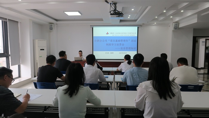 根據合肥分公司“項目管理年”活動(dòng)學(xué)習培訓計劃安排,9月20日下午,分公司組織開(kāi)展了第五期“項目管理年”活動(dòng)制度學(xué)習會(huì ),由分公司安全管理部負責人孔微明講授安全管理相關(guān)知識。分公司領(lǐng)導班子成員、機關(guān)員工以及項目部安全員參會(huì )。