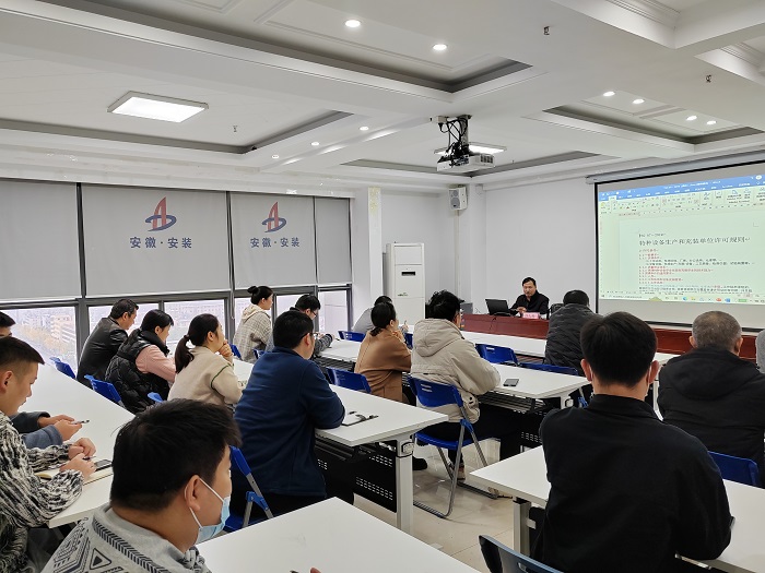 為進(jìn)一步提升公司員工對特種設備許可的理解,切實(shí)做好壓力管道(GC1)許可換證迎審材料準備工作。11月22日上午,安徽安裝公司在15樓職工之家舉辦“特種設備生產(chǎn)和充裝單位許可規則TSG07-2019”專(zhuān)題學(xué)習培訓。培訓邀請了安徽省特種設備檢測院原總工、正高級工程師許久勝授課。公司機關(guān)、所屬各單位相關(guān)部門(mén)人員約50余人參加培訓。培訓以現場(chǎng)加視頻的形式召開(kāi)。