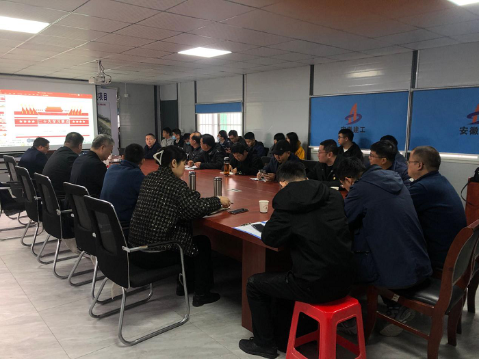 11月23日上午,公司黨委委員、副總經(jīng)理趙伯平深入項目一線(xiàn),在房建(裝飾)分公司阜南污水廠(chǎng)項目宣講黨的二十大精神。公司總工程師吳繼成、公司相關(guān)部門(mén)負責同志及分公司班子成員、全體黨員干部職工近40人參加。