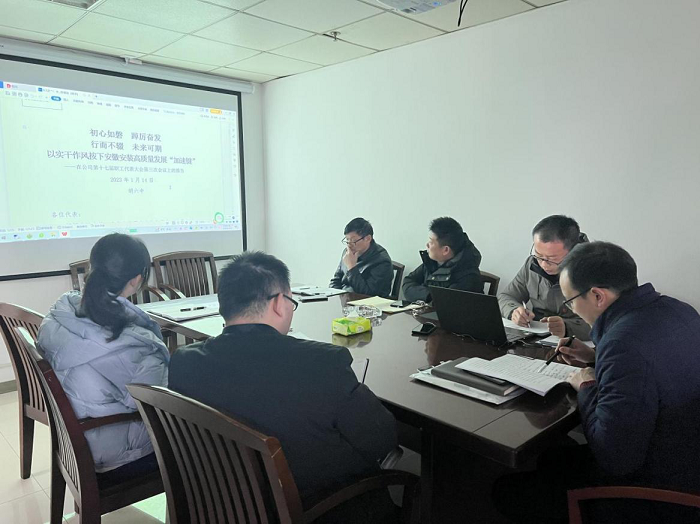會(huì )上,分公司黨支部書(shū)記、經(jīng)理龍海健重點(diǎn)宣貫、詳細解讀了公司黨委書(shū)記、董事長(cháng)胡六中在公司十七屆三次職代會(huì )上所作的題為《初心如磐踔厲奮發(fā)行而不輟未來(lái)可期以實(shí)干作風(fēng)按下安徽安裝高質(zhì)量發(fā)展“加速鍵”》的報告精神,對分公司2023年度主要任務(wù)指標和重點(diǎn)工作進(jìn)行了傳達部署。通過(guò)學(xué)習,分公司全體員工對公司2022年取得的成績(jì)有了深刻的認識,進(jìn)一步明確了公司2023年的奮斗目標、工作思路和部署安排。
