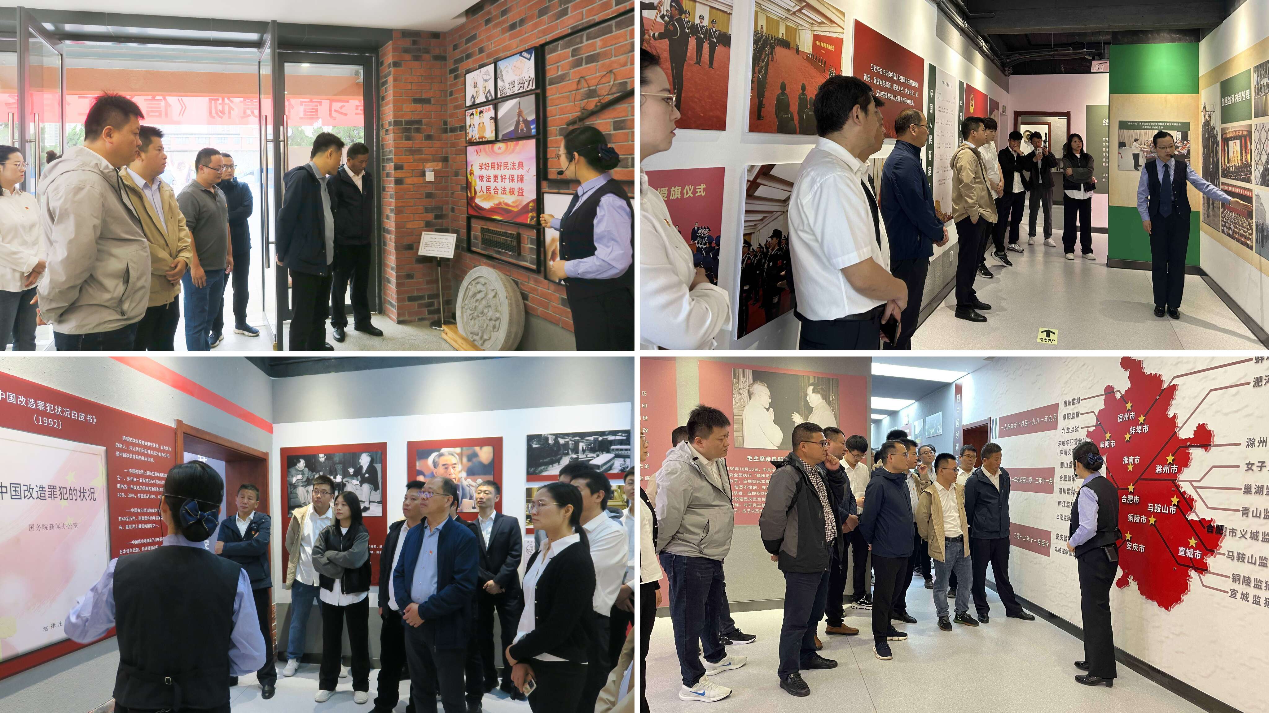 活動(dòng)中,大家在解說(shuō)員的講解下依次參觀(guān)了基地序廳、安徽監獄歷史文化展廊和安徽省法治宣傳教育長(cháng)廊,觀(guān)看了大量法治資料和文物,閱讀了大量法治宣傳圖片,瀏覽了法治影像資料,沉浸式體驗了相關(guān)法治場(chǎng)所和產(chǎn)品,各項內容都生動(dòng)展示了黨領(lǐng)導人民在革命、建設、改革各個(gè)歷史時(shí)期進(jìn)行法治建設的偉大成就和實(shí)踐,全體人員認真聆聽(tīng)講解,接受精神洗禮,筑牢思想防線(xiàn),進(jìn)一步增強了尊法、學(xué)法、守法、用法意識,切實(shí)提高了法治宣傳和廉潔自律意識。