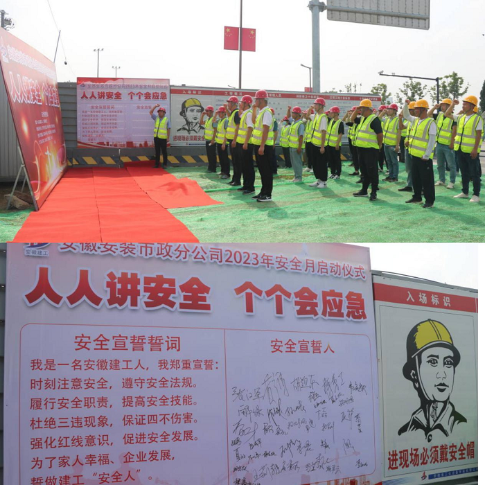 為弘揚安全發(fā)展理念,提高全員應急防患能力,6月1日上午,市政分公司2023年“安全生產(chǎn)月”活動(dòng)啟動(dòng)儀式在吳山神道改造及周邊綠化提升項目部舉行。分公司領(lǐng)導班子及全體員工參加本次活動(dòng),公司安全管理部副經(jīng)理蔣秀正應邀參加。