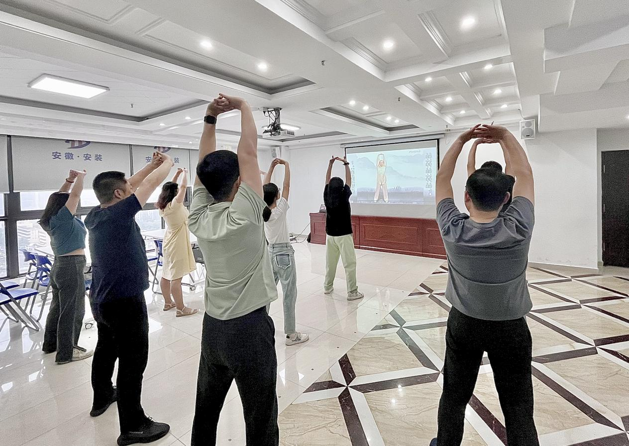 分公司組織開(kāi)展“體檢中常見(jiàn)三大結節”健康知識講座。讓大家樹(shù)立新的健康理念,增強自我保健意識,更好地工作和幸福地生活。為提高健身意識,培養良好健身習慣,近期分公司還組織大家利用午休空閑時(shí)間開(kāi)展練習八段錦等健康有益的健身活動(dòng),幫助大家在繁忙工作之余能強身健體。