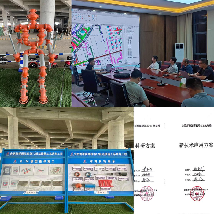 建工安裝新橋國際機場(chǎng)T2航站樓機電安裝項目,位于合肥市新橋國際機場(chǎng)場(chǎng)區內,公司承接的施工范圍包括航站樓南北指廊給排水系統、采暖、通風(fēng)空調系統、消防及電氣系統安裝等,合同總造價(jià)2.747億元,合同工期總日歷天數941天,計劃于2025年10月15日竣工。本工程為省一號重點(diǎn)工程,工程體量大,建筑空間大,施工內容多、難度大、工期緊,質(zhì)量要求高。自開(kāi)工建設以來(lái),項目部結合實(shí)際,通過(guò)設立“黨員示范崗”和成立黨員技術(shù)攻關(guān)小組,助推項目建設“加速度”。項目黨員同志帶頭研究新工藝、創(chuàng )新使用新方法,大力開(kāi)展技術(shù)攻關(guān),通過(guò)不斷摸索實(shí)驗,逐步形成了以BIM+“樣板引路”的智慧施工管理模式,在充分發(fā)揮黨員先鋒模范作用的同時(shí),進(jìn)一步提高生產(chǎn)效率和工程質(zhì)量,促進(jìn)黨建和生產(chǎn)經(jīng)營(yíng)有效融合。
