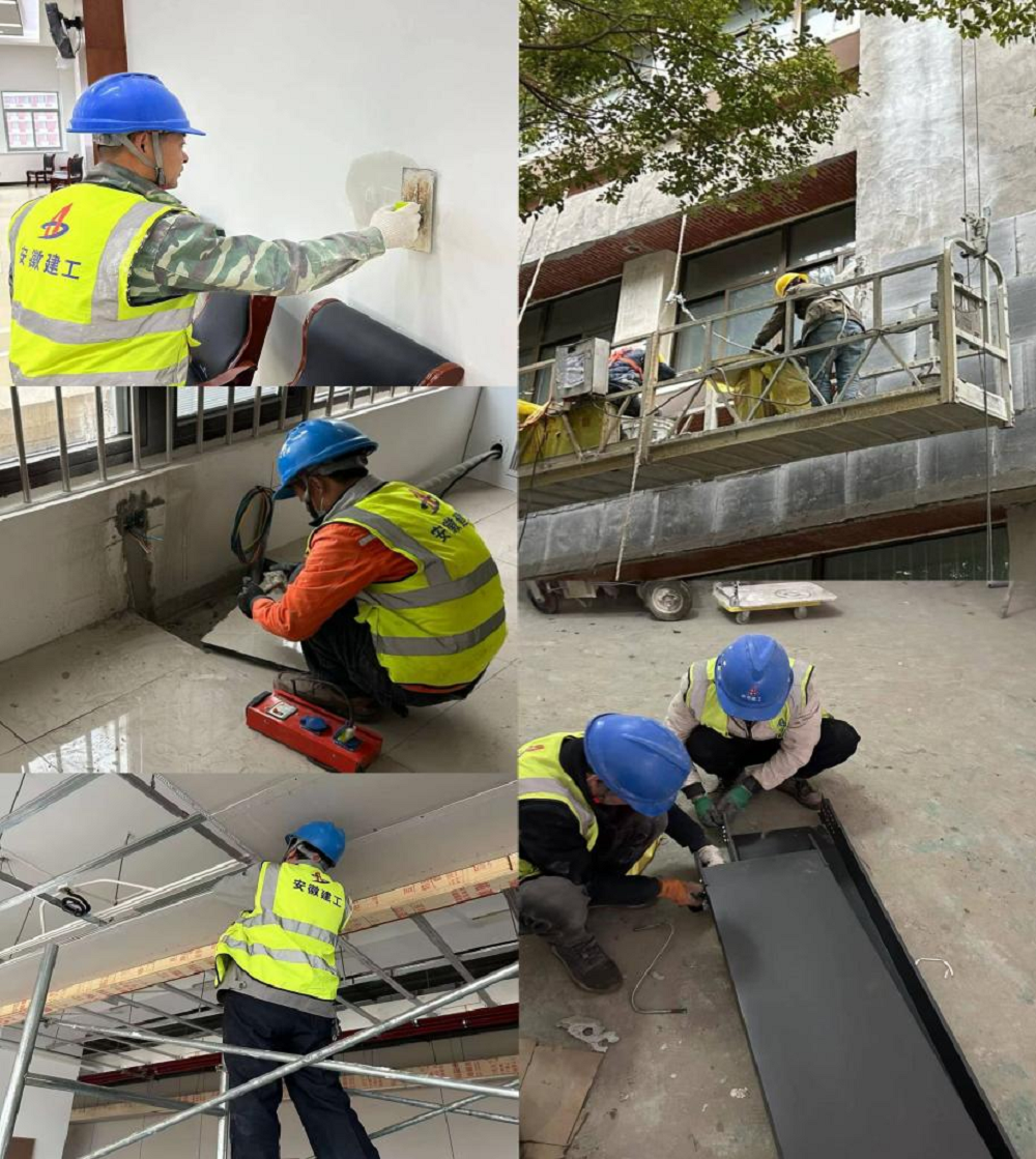建工安裝滁州分公司安徽理工大學(xué)維修改造項目(二期)位于合肥市長(cháng)豐縣雙鳳路與鳳霞路交口,施工內容主要為對已有實(shí)訓樓、產(chǎn)教融合樓、綜合服務(wù)中心、生活服務(wù)次中心四個(gè)單體合計約3萬(wàn)平方米的維修、改造、安裝以及室外附屬工程給排水、景觀(guān)、鋪裝、綠化等。目前,通過(guò)項目全體員工夜以繼日、分秒必爭的奮斗,生活服務(wù)次中心已基本完工,實(shí)訓樓施工完成約60%,產(chǎn)教融合樓施工完成約70%,綜合服務(wù)中心完成約75%,外墻真石漆及屋面保溫完成約50%。