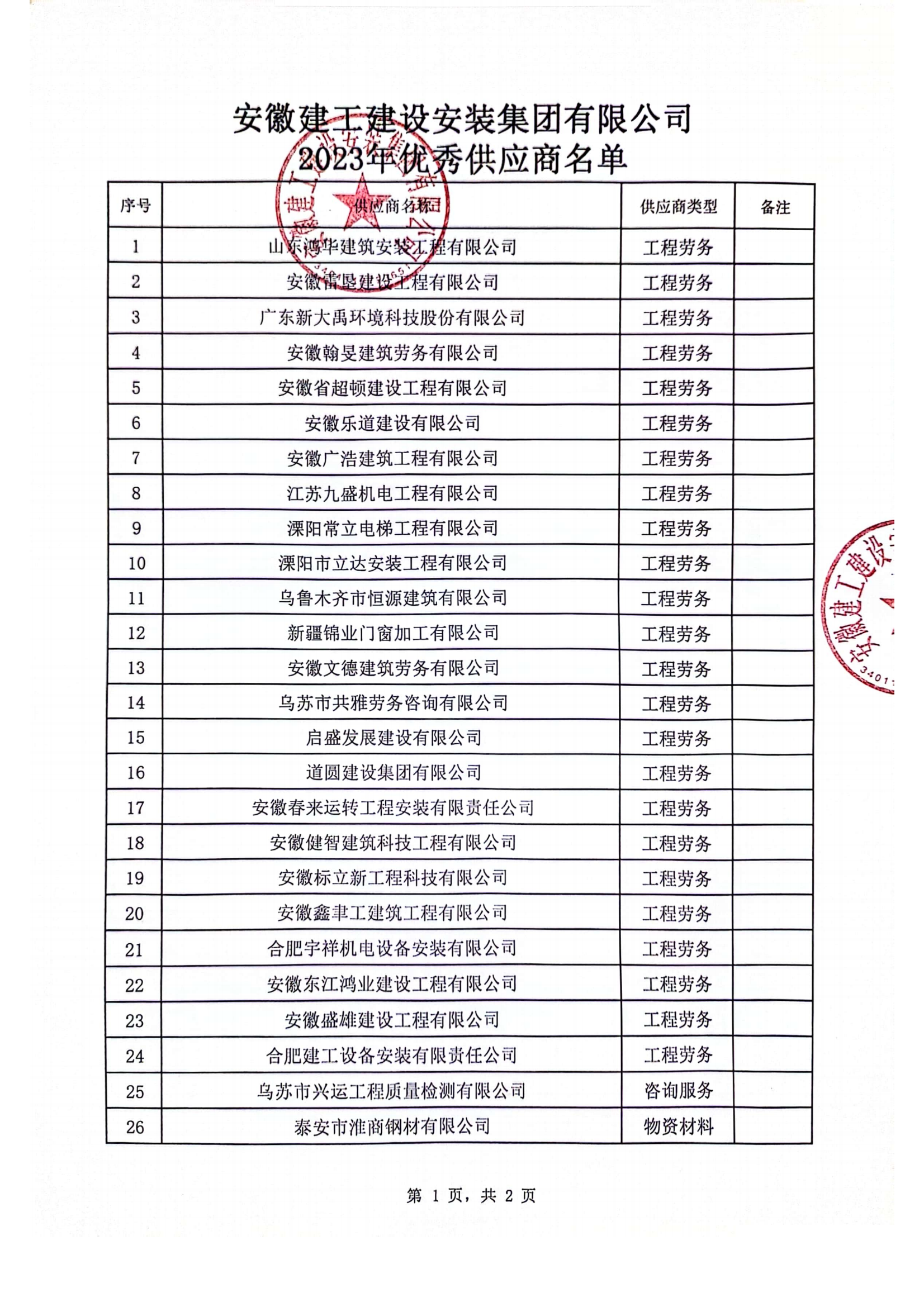 關(guān)于公布2023年度公司優(yōu)秀供應商的通知