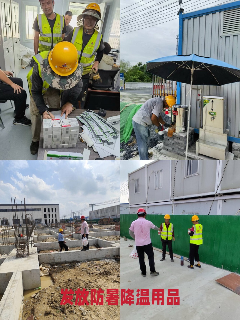 為應對高溫天氣,項目部多措并舉,每日供應冰水,加量供應防暑降溫物資并合理調整作息時(shí)間,從而保障施工人員在高溫天氣作業(yè)安全,在這炎炎烈日下給工人師傅們送去一絲清涼。