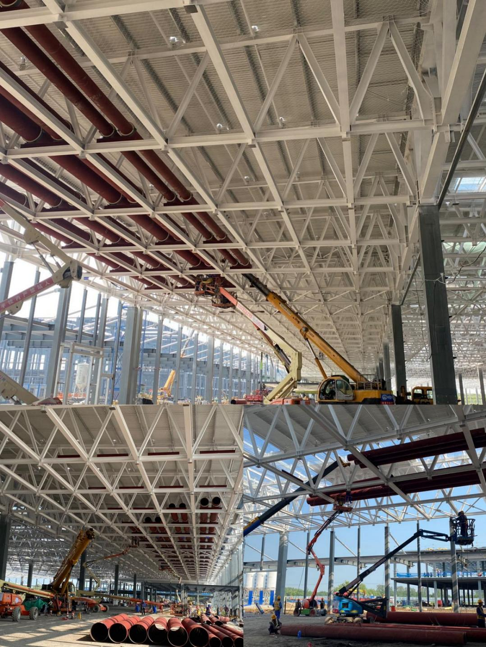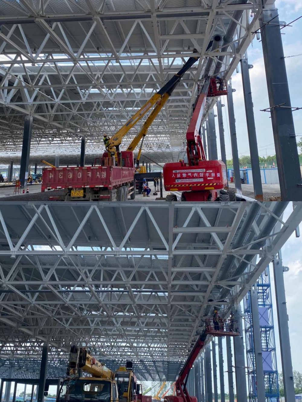 該項目工期緊、任務(wù)重,項目部開(kāi)足馬力搶抓節點(diǎn),充分合理調配人、材、機及資金等資源。為搶抓晴好天氣,錯峰高溫時(shí)段,管理人員靠前指揮,作業(yè)人員并聯(lián)推進(jìn)、多點(diǎn)開(kāi)花,加班加點(diǎn)、挑燈夜戰。在確保安全質(zhì)量的前提下,優(yōu)化施工方案,緊跟鋼結構及土建單位的施工進(jìn)度“見(jiàn)縫插針”,全力推進(jìn)本項目的建設進(jìn)度。