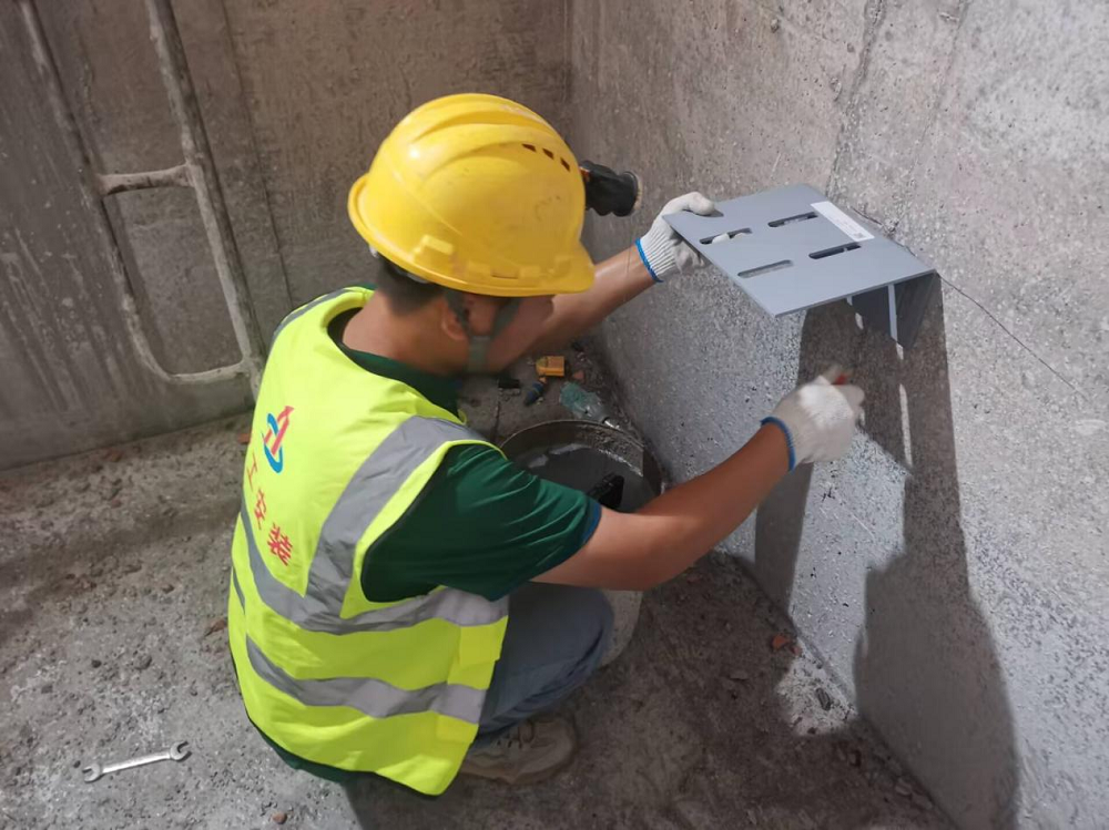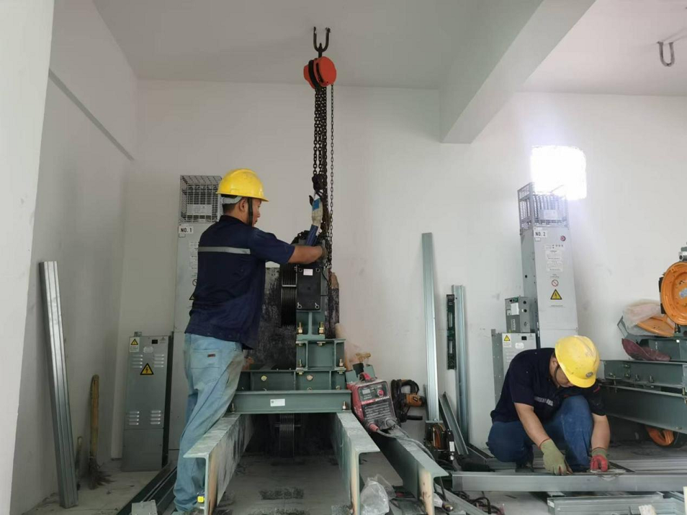 蚌埠經(jīng)開(kāi)區消防二中隊項目現場(chǎng)施工人員正在安裝電梯支架