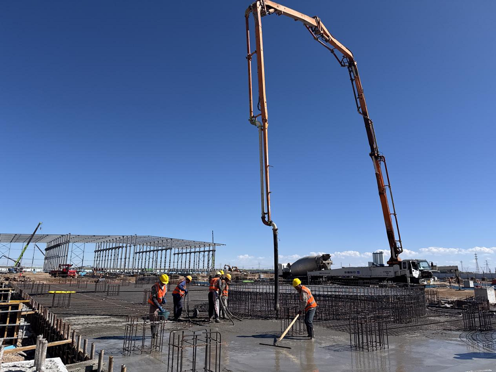 截至目前,廠(chǎng)房鋼結構完成1500噸建設量,獨立基礎、條形基礎全部完成,設備基礎正在施工;變電所二層主體施工完成,三層主體正在施工。