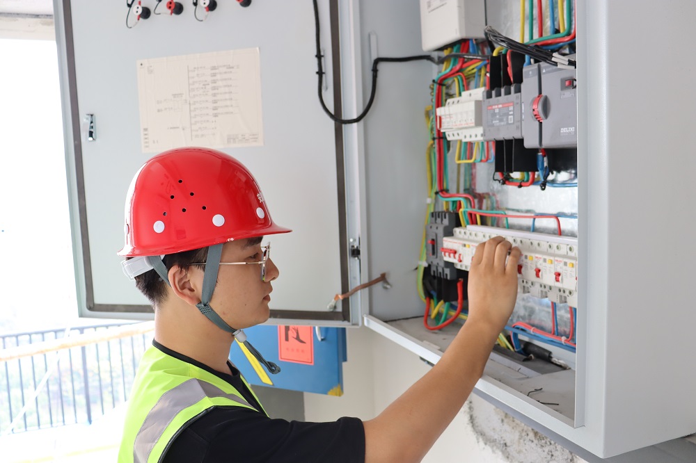 中國蚌埠傳感谷(寧波蚌埠微電子產(chǎn)業(yè)園)項目,技術(shù)員,鄭繼昊,正在檢查電梯控制柜操作系統。奮進(jìn)正當時(shí),我為祖國建設出力,以實(shí)際行動(dòng)建設精品工程。我在項目堅守,我為祖國慶生。