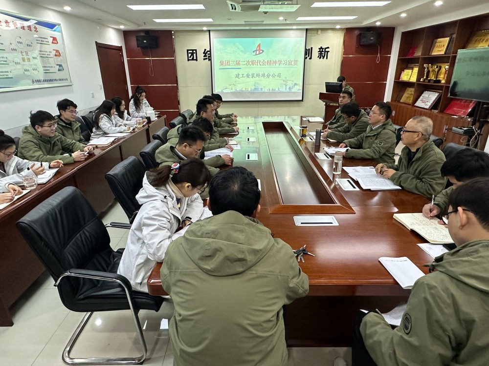 2月 13 日,建工安裝蚌埠分公司召開(kāi)專(zhuān)題學(xué)習會(huì ),全面深入學(xué)習宣貫安徽建工集團三屆二次職代會(huì )會(huì )議精神。分公司班子成員、機關(guān)全體員工以及在蚌項目管理人員參會(huì )。會(huì )議由分公司黨支部書(shū)記、經(jīng)理趙銘亮主持。