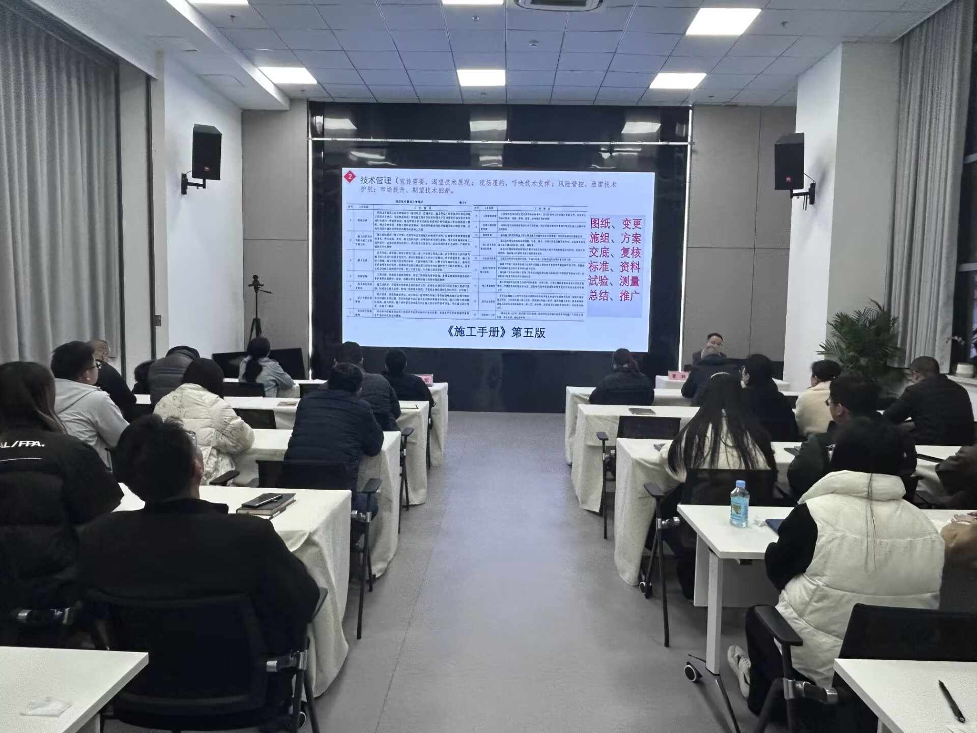 夏輝以中央發(fā)布的《一張思維導圖帶大家看2025年政府工作十大任務(wù)》的切入點(diǎn),強調了高質(zhì)量發(fā)展和創(chuàng )新驅動(dòng)的重要性。隨后他從技術(shù)管理、機電工程體系、機電工程安裝工藝細部節點(diǎn)做法優(yōu)選、AI應用等方面對機電工程基礎知識進(jìn)行了細致解讀,講解了技術(shù)在企業(yè)運營(yíng)中的核心作用。就《聚焦機電主責主業(yè) 走“專(zhuān)精特強”之路行動(dòng)方案》(第一版)與參培人員進(jìn)行深入交流。