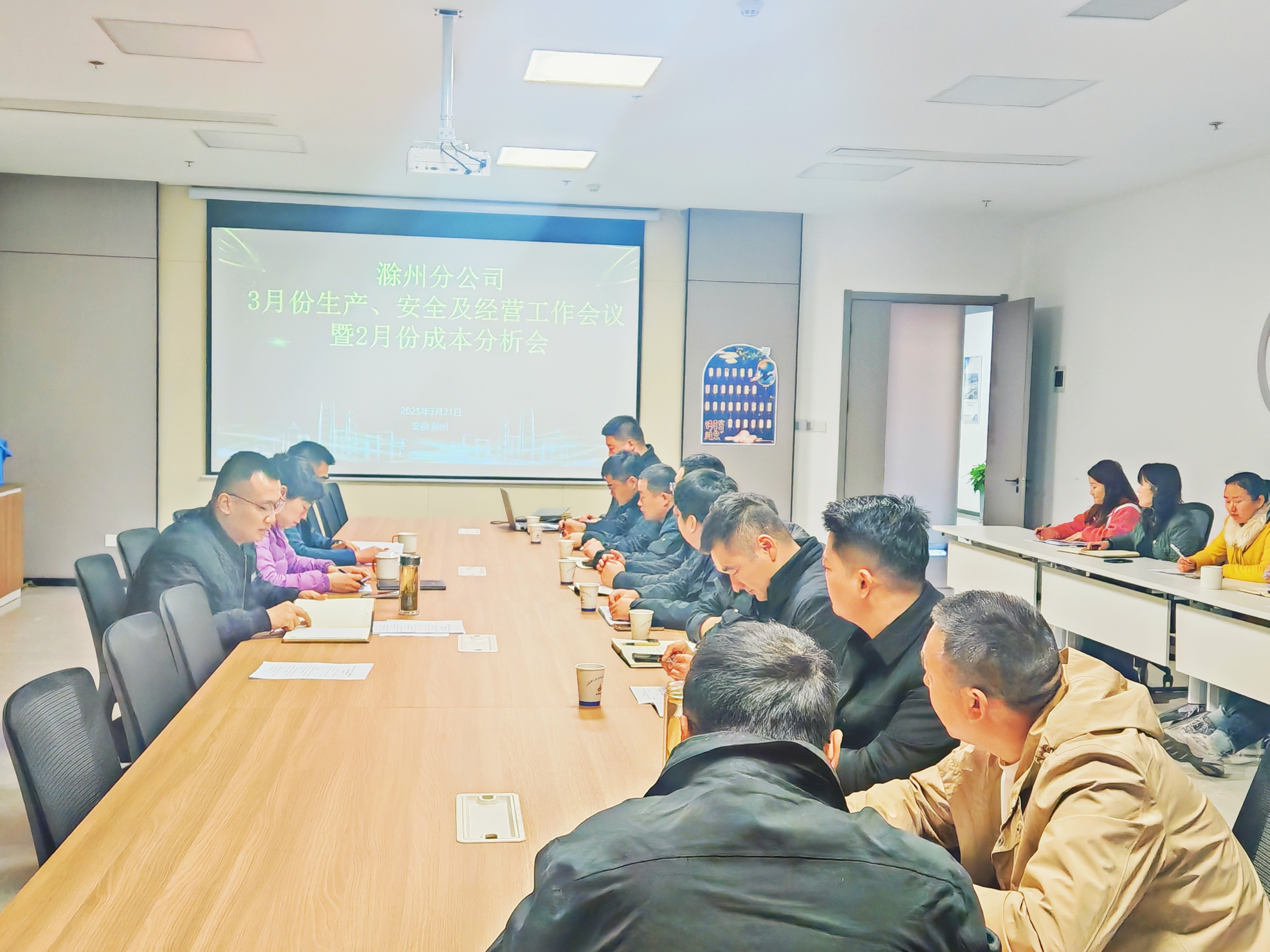 2025年3月21日上午,建工安裝滁州分公司組織召開(kāi)3月份生產(chǎn)、安全及經(jīng)營(yíng)工作會(huì )議暨2月份成本分析會(huì )。分公司領(lǐng)導班子成員、各項目經(jīng)理、機關(guān)各部門(mén)負責人等參加會(huì )議,會(huì )議由分公司副經(jīng)理張漢軍主持。