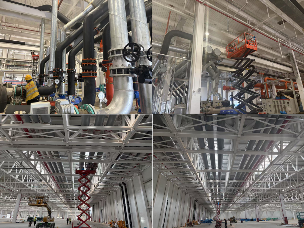 自一季度以來(lái),項目部以“2025開(kāi)局即決戰”的昂揚斗志,迅速掀起“大干快上”施工熱潮。對各車(chē)間、各系統剩余工程量展開(kāi)全面梳理統計,同時(shí)針對剩余工程量堅持每日召開(kāi)專(zhuān)題會(huì ),以倒排計劃為“發(fā)令槍”,對照時(shí)間節點(diǎn)要求各班組加班加點(diǎn)、不折不扣完成。截至發(fā)稿,車(chē)間一大面積施工基本完成,形象進(jìn)度完成約96%;車(chē)間二形象進(jìn)度完成約90%;車(chē)間四形象進(jìn)度完成約92%;站房一各設備管道基本安裝完成,正在調試中,形象進(jìn)度完成約90%。目前,各車(chē)間工藝生產(chǎn)均已進(jìn)場(chǎng),燃氣鍋爐點(diǎn)火成功、空壓站完成試運行、工藝24h冷凍水、恒溫恒濕空調均已投入使用;各車(chē)間工藝區送電已到位、供水完成。