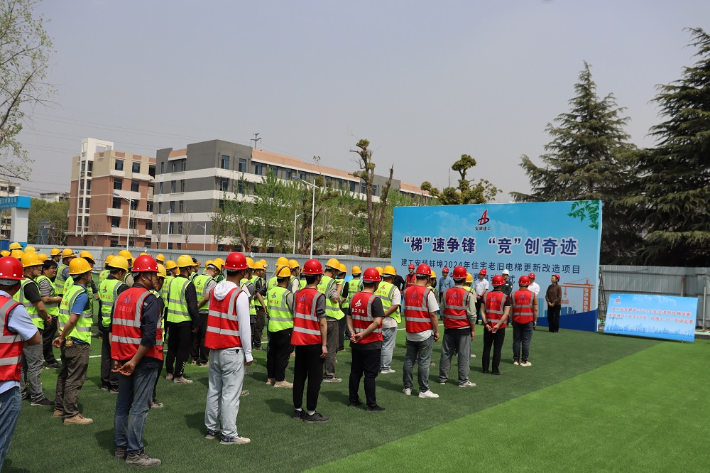 為貫徹集團和公司兩級職代會(huì )精神,落實(shí)公司勞動(dòng)競賽活動(dòng)相關(guān)工作要求,加快工程建設進(jìn)度,不斷提高項目管理和建設水平,4月10日,建工安裝電梯分公司蚌埠2024年住宅老舊電梯更新改造項目舉行了以“梯”速爭鋒 “競”創(chuàng )奇跡為主題的勞動(dòng)競賽啟動(dòng)儀式,正式吹響了“大干20天,決戰4.30”勞動(dòng)競賽的奮進(jìn)號角。蚌埠市城市投資控股有限公司代表、分公司班子成員、項目部管理人員、各參建單位代表及作業(yè)人員共130余人參加活動(dòng)。